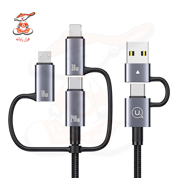 کابل شارژر همه کاره usams مدل us-sj738 ،دارای 3 پورت microUSB – میکرو ، Typec- تایپ سی و لایتنیگ میباشد که شما را از همراه داشتن چندین کابل راحت میکند و سر دیگر این کابل یک پورت USB-A و یک پورت تایپ سی است. در واقع اگر بخواهیم انواع این کابل 6 در 1 را شرح بدهیم،شما با داشتن این کابل ،کابلهای زیر را به صورت یکجا در اختیار دارید:... ( کابل شارژ تایپ سی به تایپ سی ، کابل شارژ تایپ سی به USB-A – کابل شارژ لایتنینک به تایپ سی ، کابل شارژ لایتنینگ به USB-A – کابل شارژ میکرو usb به تایپ سی ، کابل شارژ میکرو usb به USB-A)... جنس این کابل کنفی میباشد که بسیار مقاوم و با کیفیت ساخته شده است و در برابر گره خوردگی و پارگی مقاومت دارد. طول کابل چند سر یوسمز 200 سانتیمتر است و برای فواصل نسبتاً طولانی بسیار مناسب میباشد. از دیگر مزایای کابل همه کاره یوسمز مدل sj738 حداکثر قدرت شارژدهی این کابل میباشد که تا 240 وات است.