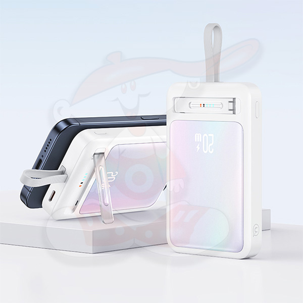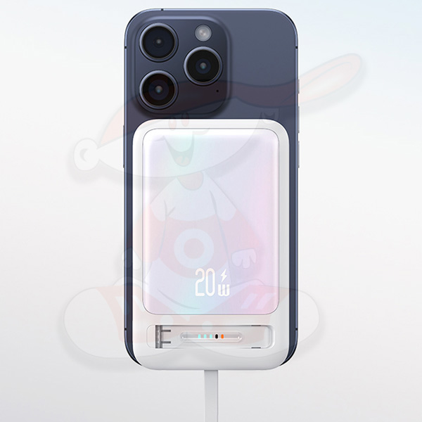 در طراحی این پاوربانک یک قابلیت ویژه در نظر گرفته شده است که شما می توانید با باز کردن پایه کناری پاوربانک از آن به عنوان نگهدارنده موبایل هم استفاده کنید. ابعاد پاوربانک مغناطیسی یوسمز 109x68x17.8 میلیمتر میباشد که بدون هیچ مشکلی به گوشی شما متصل شده، به طوری که هیچ تداخلی با دوربین گوشیهای آیفون 12 به بعد به وجود نمیآید.