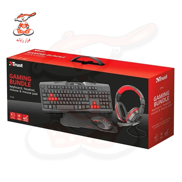 ست گیمینگ Ziva 4 in 1 از برند تراست، مجموعهای چهار تکه برای شروع گیمینگ است. این پکیج شامل کیبورد، موس، هدست و پد موس میشود. طراحی هماهنگ اجزا، تجربهای پایه و کارآمد برای کاربران تازهکار فراهم میکند.کیبورد باسیم این مجموعه دارای کلیدهای ممبران با نور پسزمینه چندرنگ است. کلیدها عملکرد روانی دارند و چیدمان کامل آنها تایپ و کنترل بازی را راحت میکند.موس طراحی ارگونومیک دارد و از سنسور نوری برای حرکت دقیق پشتیبانی میکند. نورپردازی داخلی، ظاهر جذابی به آن بخشیده و دکمهها بازخورد مناسبی ارائه میدهند.هدست دارای کاپهای نرم و هدبند قابل تنظیم است. با وجود میکروفون داخلی، امکان برقراری ارتباط در بازیهای چندنفره فراهم میشود. طراحی سبک هدست، استفادهی طولانیمدت را سادهتر میکند.پد موس با سطح پارچهای نرم و پایه ضد لغزش، دقت حرکت موس را افزایش میدهد. ابعاد استاندارد آن برای کاربری گیمینگ کاملاً مناسب است.